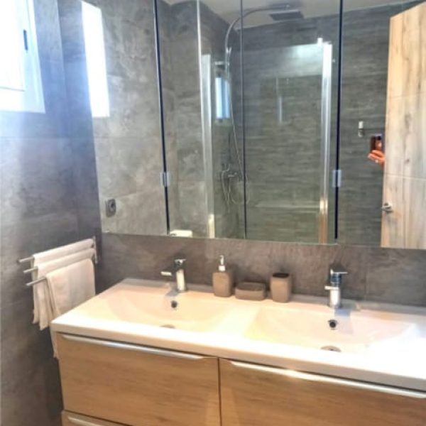 Sus dos amplios dormitorios uno de ellos 17.40m2, hacen que esta estancias sean realmente cómodas y confortables, es la planta superior también disponemos de una bonita terraza que comunica a uno de estos dormitorios y un baño completo de estilo Italino que da servicio a estas dos bonitas y soleadas estancias.