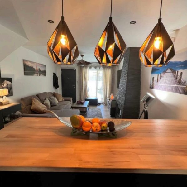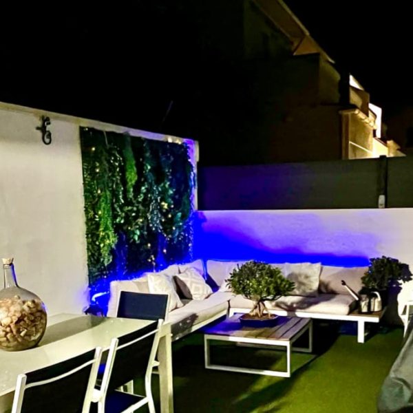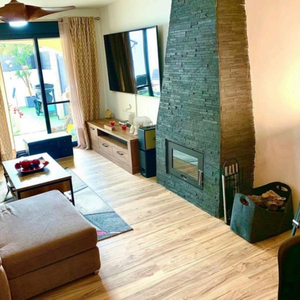 Precioso salón con chimenea su amplia terraza de 25m2 hace que este espacio sea aún más agradable aqui podemos encontar también su bonita cocina americana diseñada con exquisito gusto.