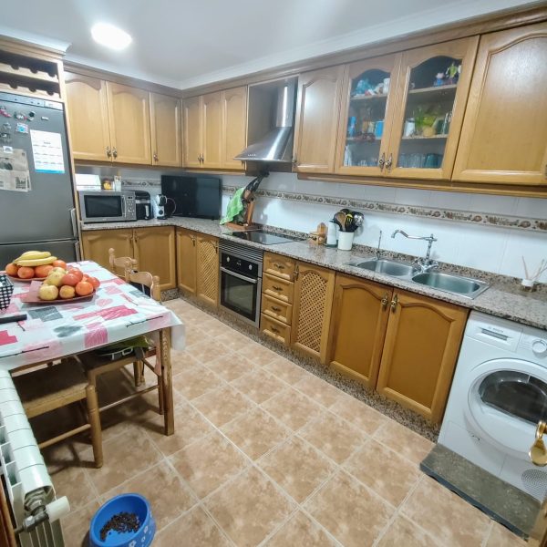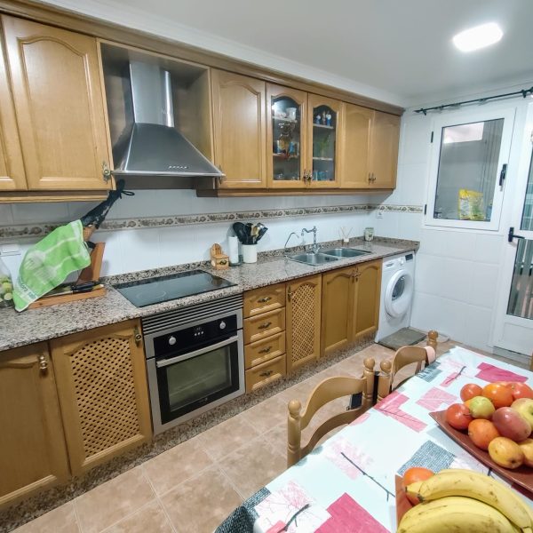 En esta planta también tenemos una cocina equipada con unos bonitos muebles de madera, y acceso a un amplio patio.