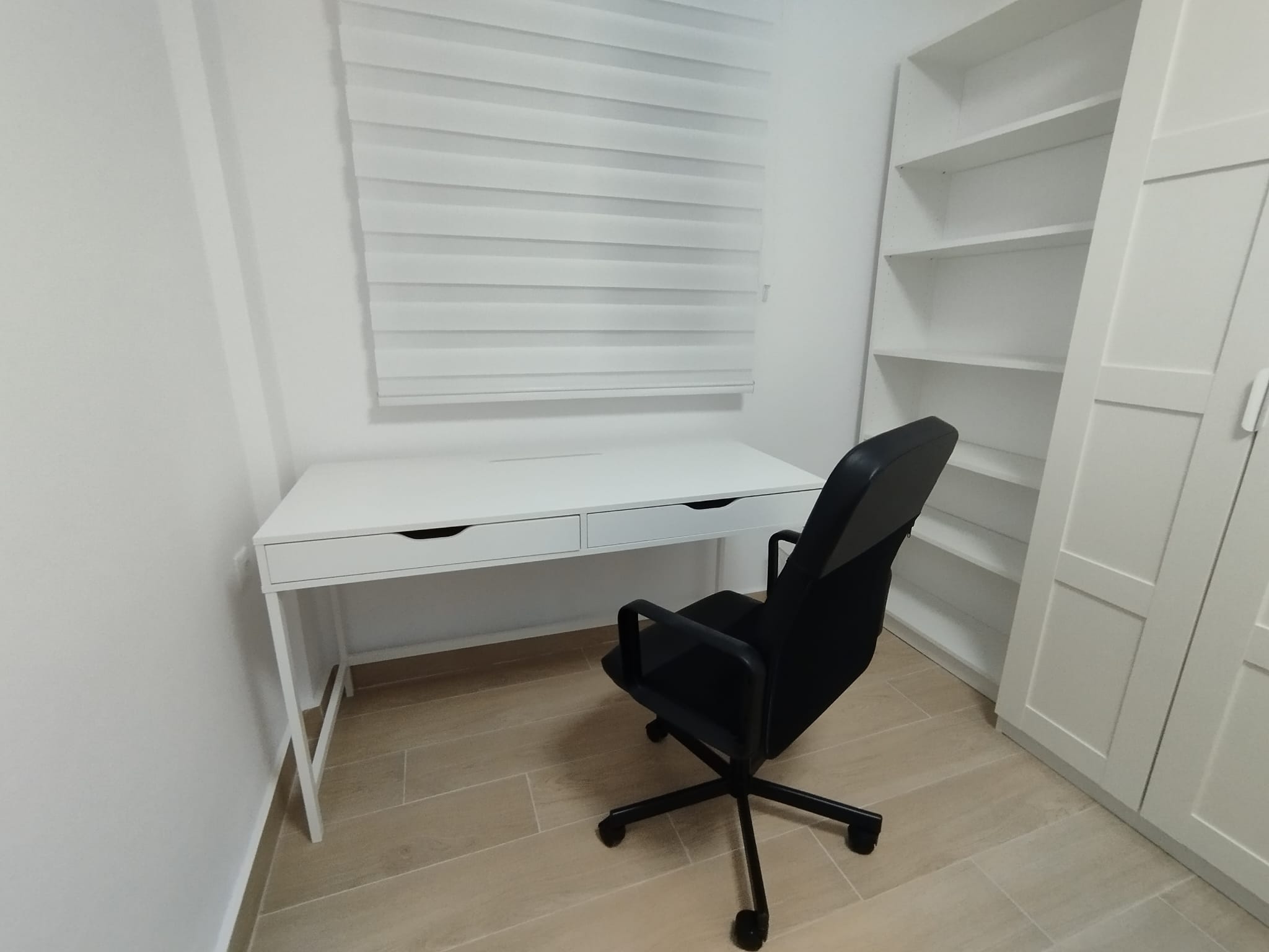 La vivienda dispone 3 habitaciones individuales, cada una con cerradura independiente, cama de 105 cm, armario amplio y escritorio completo. Todo el mobiliario es nuevo, garantizando condiciones óptimas desde el primer día.