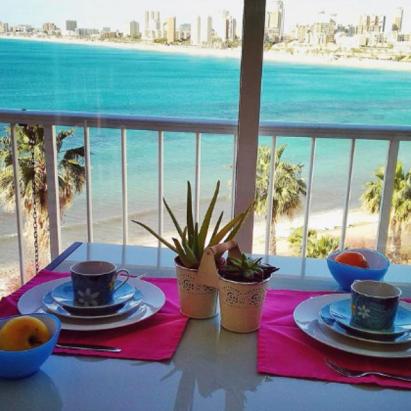 Podemos disfrutar de unos dias de relajación en un Apartamento totalmente equipado con vistas inmejorables de toda la playa Muchavista hasta la Albufereta.