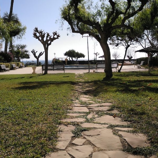 En nuestra piscina puedes relajarte y disfrutar del sonido del mar, ya que disponemos de acceso directo a nuestra bonita playa de Rocas.
