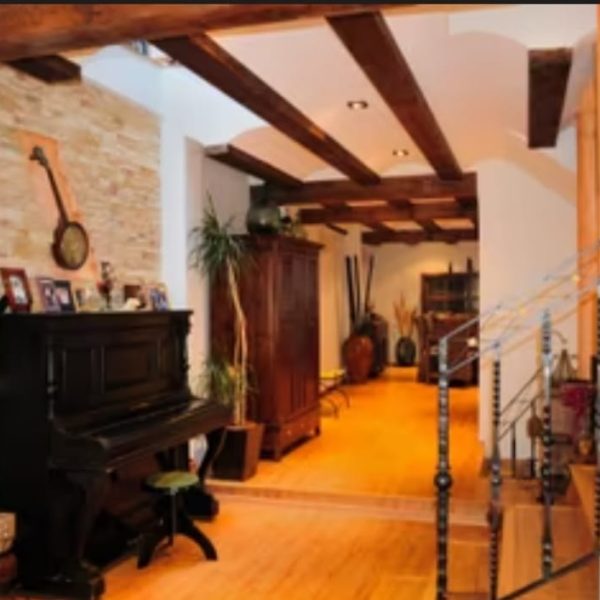 Al entrar, te sorprenderá su acogedor estilo rústico, acentuado con vigas de madera que aportan calidez y confort a todos sus espacios. En la primera planta, verás un local comercial en activo que puede transformarse en un garaje con capacidad para tres coches, ofreciéndote múltiples opciones de uso.