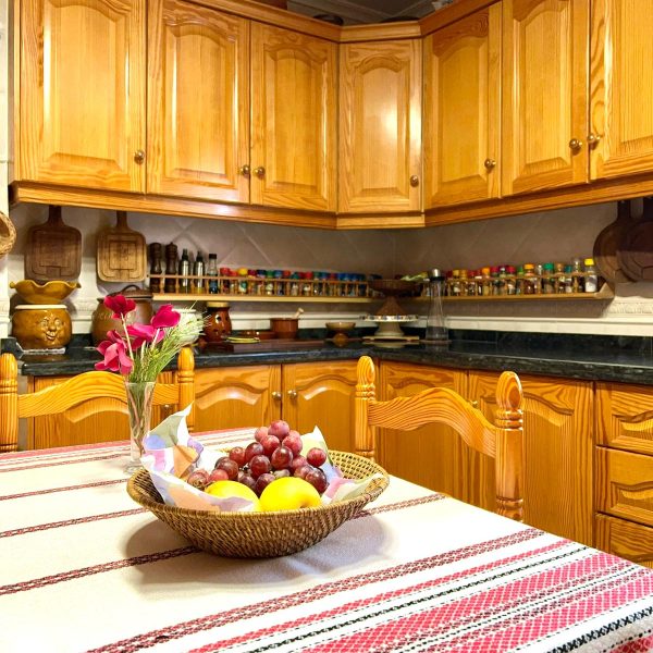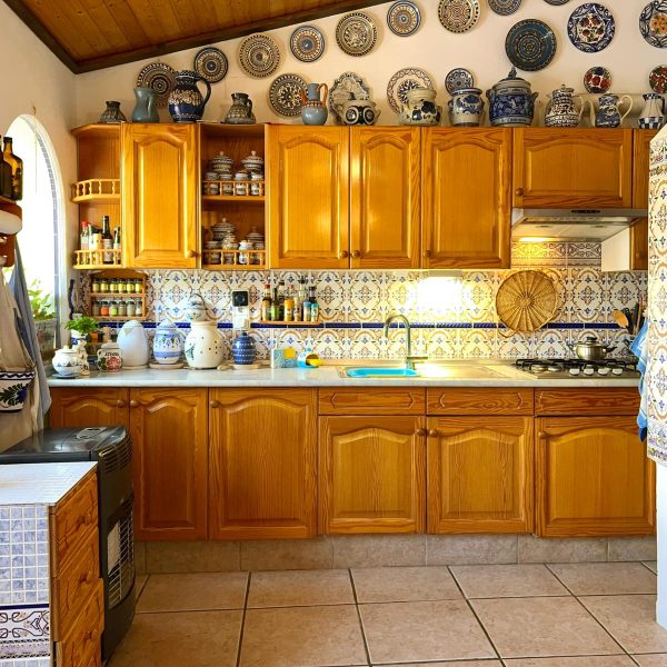 Cocina independiente exterior donde podrás encontrar una estancia acogedora, para tus invitados tanto en verano como en invierno, ya que dispone de chimenea, horno de leña y barbacoa ambos separados.
